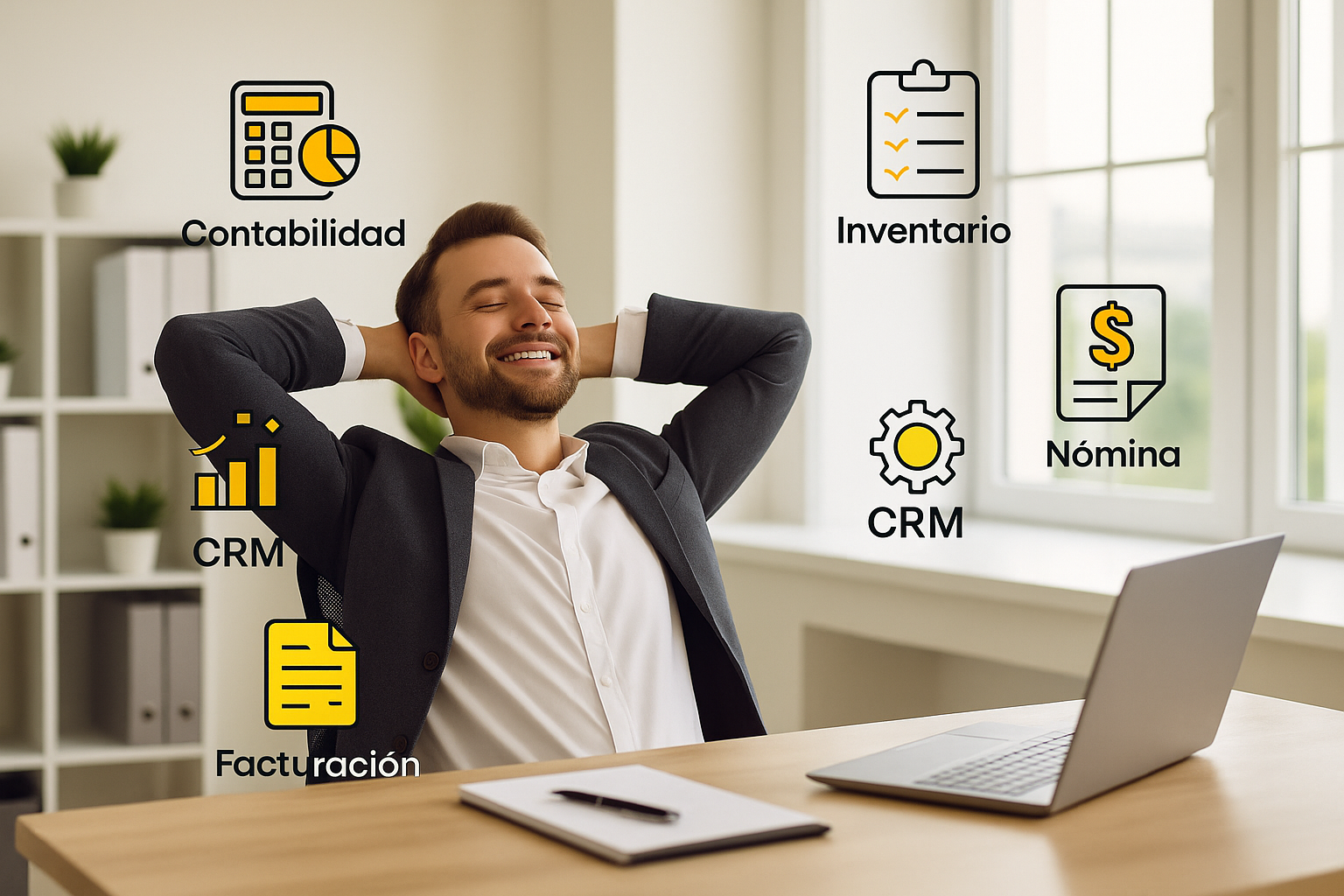 Con Odoo ERP administra ventas, inventarios, facturación, proyectos, marketing y más en una sola plataforma. Todo conectado y listo para crecer contigo.
